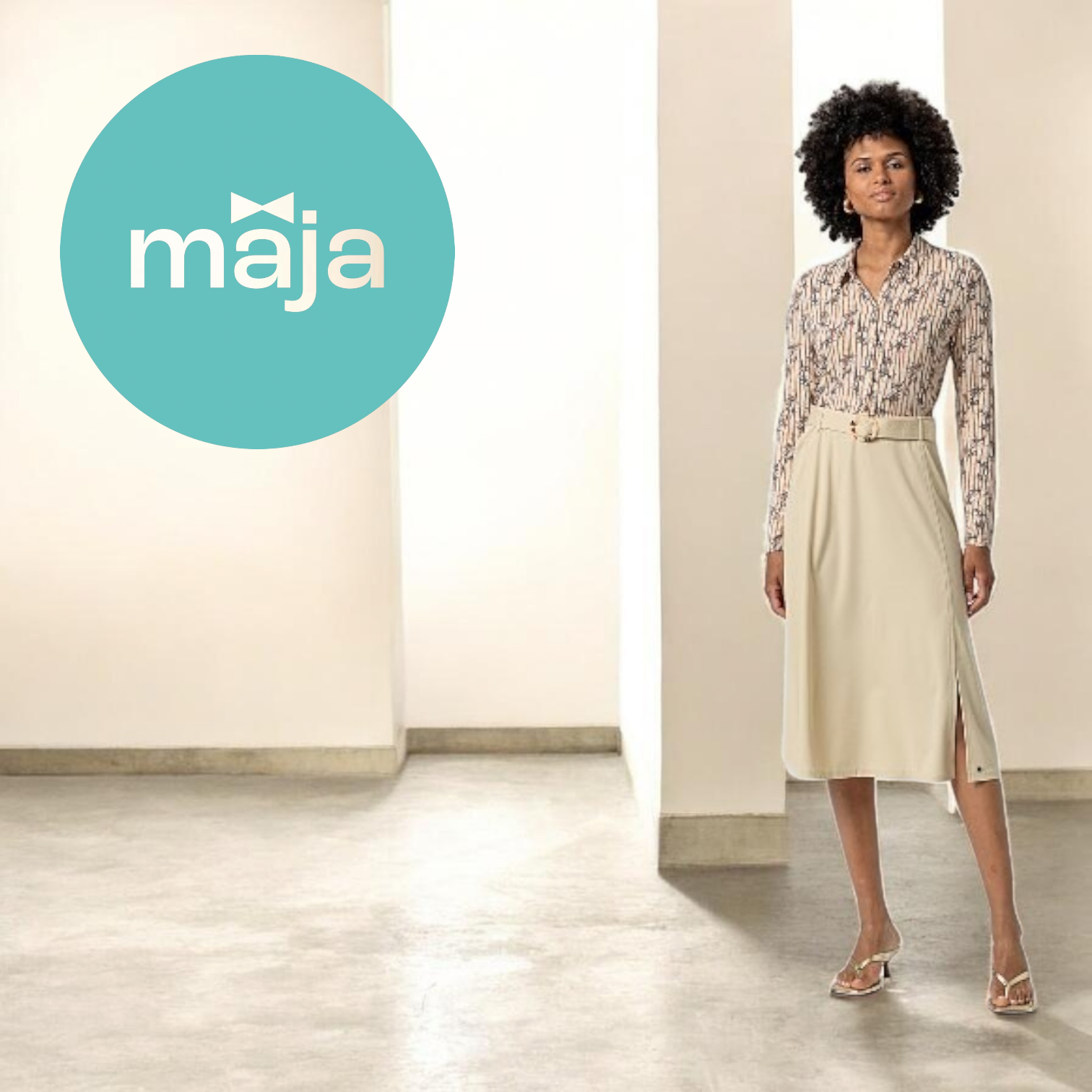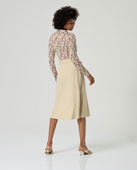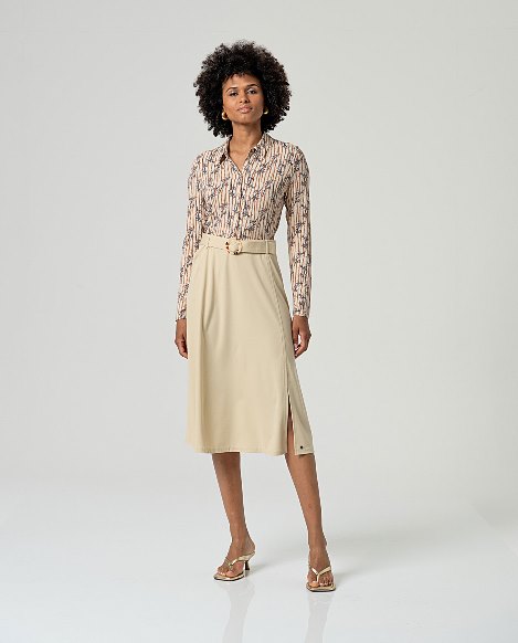 Falda midi con silueta evasé, de tiro medio, con cintura elástica y cinturón a juego con hebilla metálica